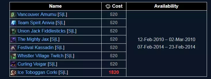 没错就是冬奥会限定皮肤,非常富有纪念意义的皮肤,其实这也算是奥运会皮肤吧。2010年,拳头为了庆祝温哥华奥运会,而特此发售的皮肤。并且还推出了以冬季奥运会为主题的地图,活动在2月12号开始,3月2号结束。站长也没有经历过,太远了。那时候我还没接触LOL