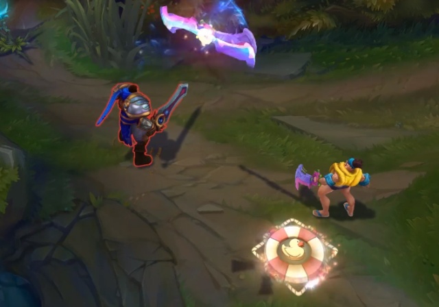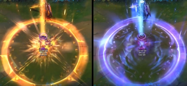 德莱文皮肤特效的分别,主要在武器和Q技能落地印记上,相比而言,泳池的印记更好看一点。