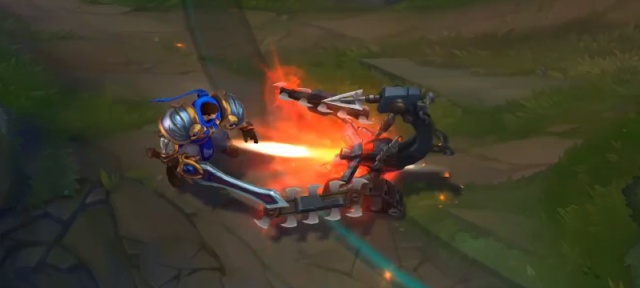 唯一平A冷却有特效的皮肤:两次平A的间隔中间会旋转刚刚射击过的那把枪,转完后正好可以进行下一次平A。