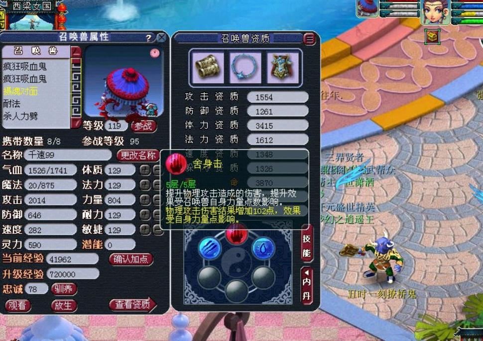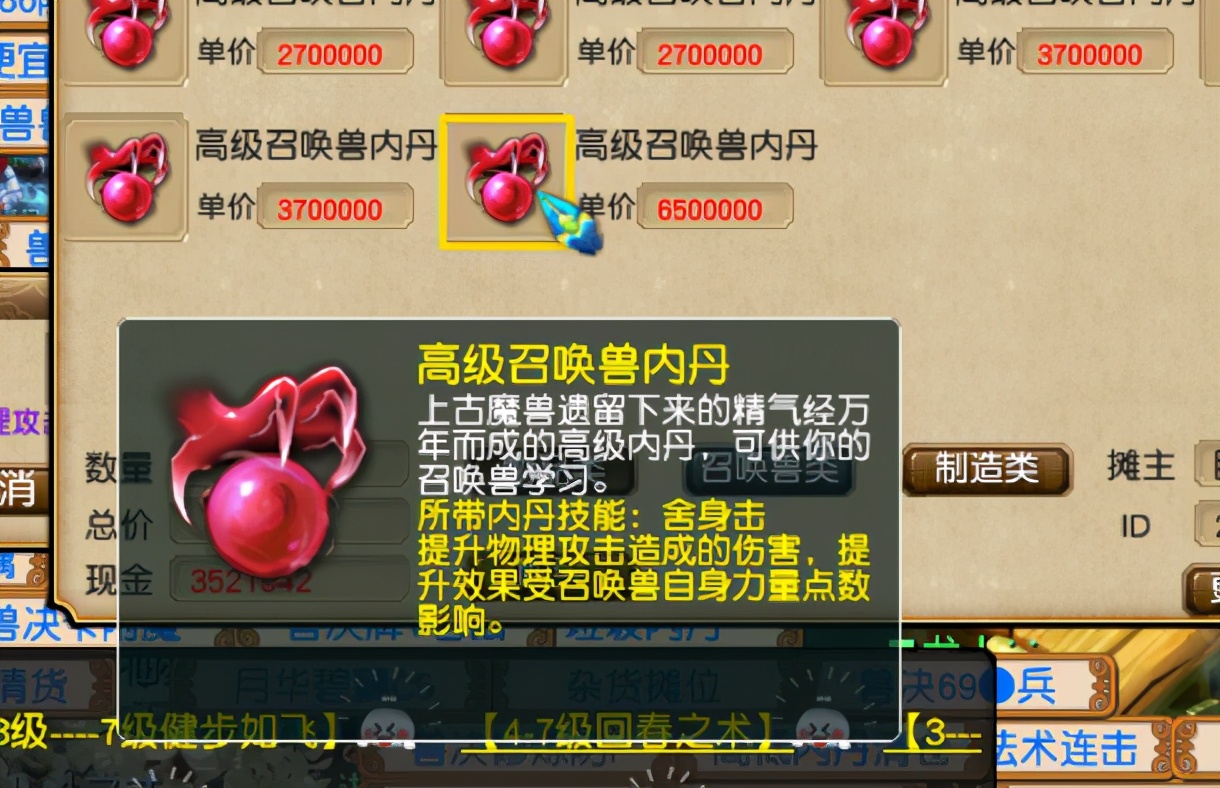 由于召唤兽只能打一个高级内丹,所以选择生死决和舍身击之前,必须对这两种内丹的效果有完全的了解。