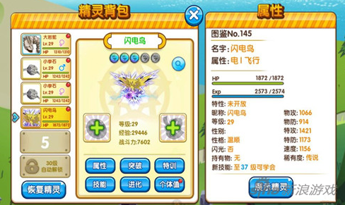 口袋妖怪复刻闪电鸟最高的能力是特攻,属性为电+飞行,非常完美的组合,电系唯一的弱点地上因为飞行系完美抵抗,飞行的弱点电也因为电系变成普通效果。闪电鸟在游戏中还是一个非常不错的宠物,今天小编为大家带来的是闪电鸟的配招打法。感兴趣的玩家可以来参考一下。