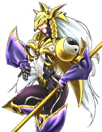 本作的女神数码宝贝之一,她的造型像神官,像女巫,由九尾狐兽进化而来。本作最强辅助之一。她有一招可以为队友消除所有异常状态,另一招可以为队友施加状态盾,使其免疫任何状态。