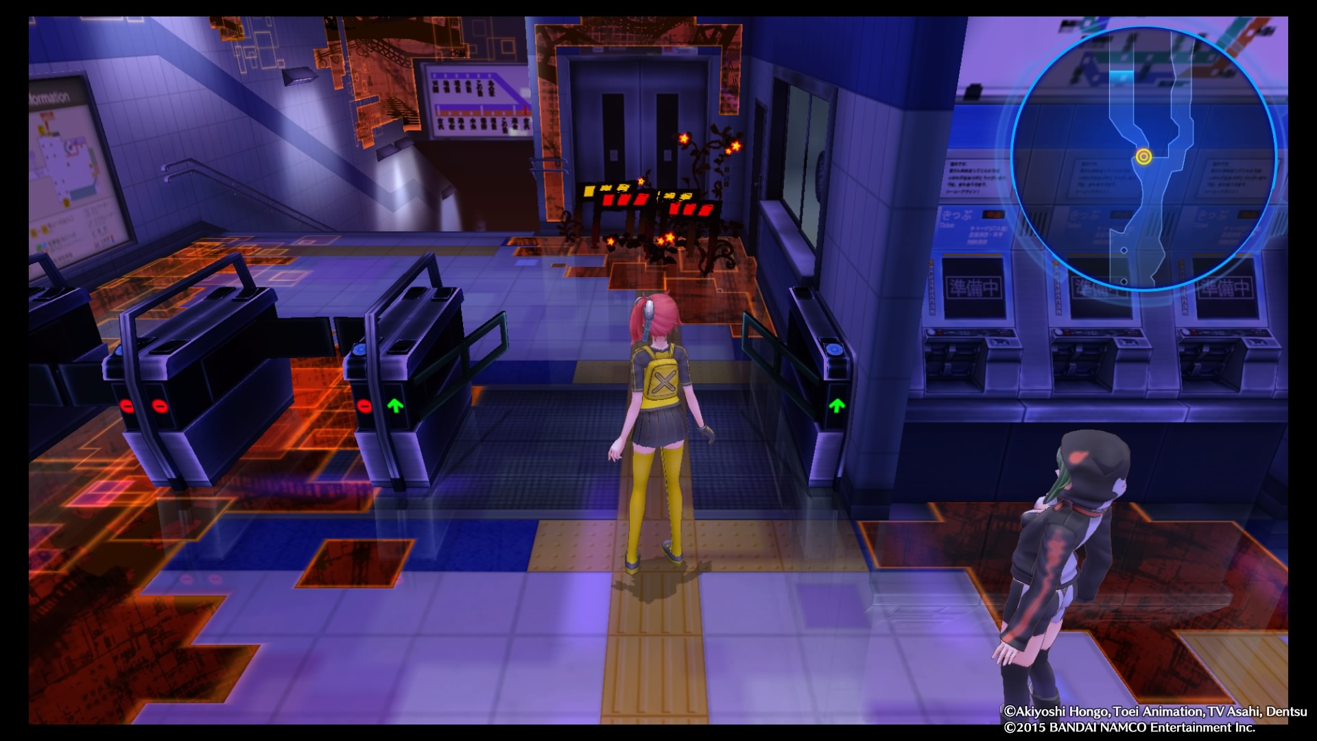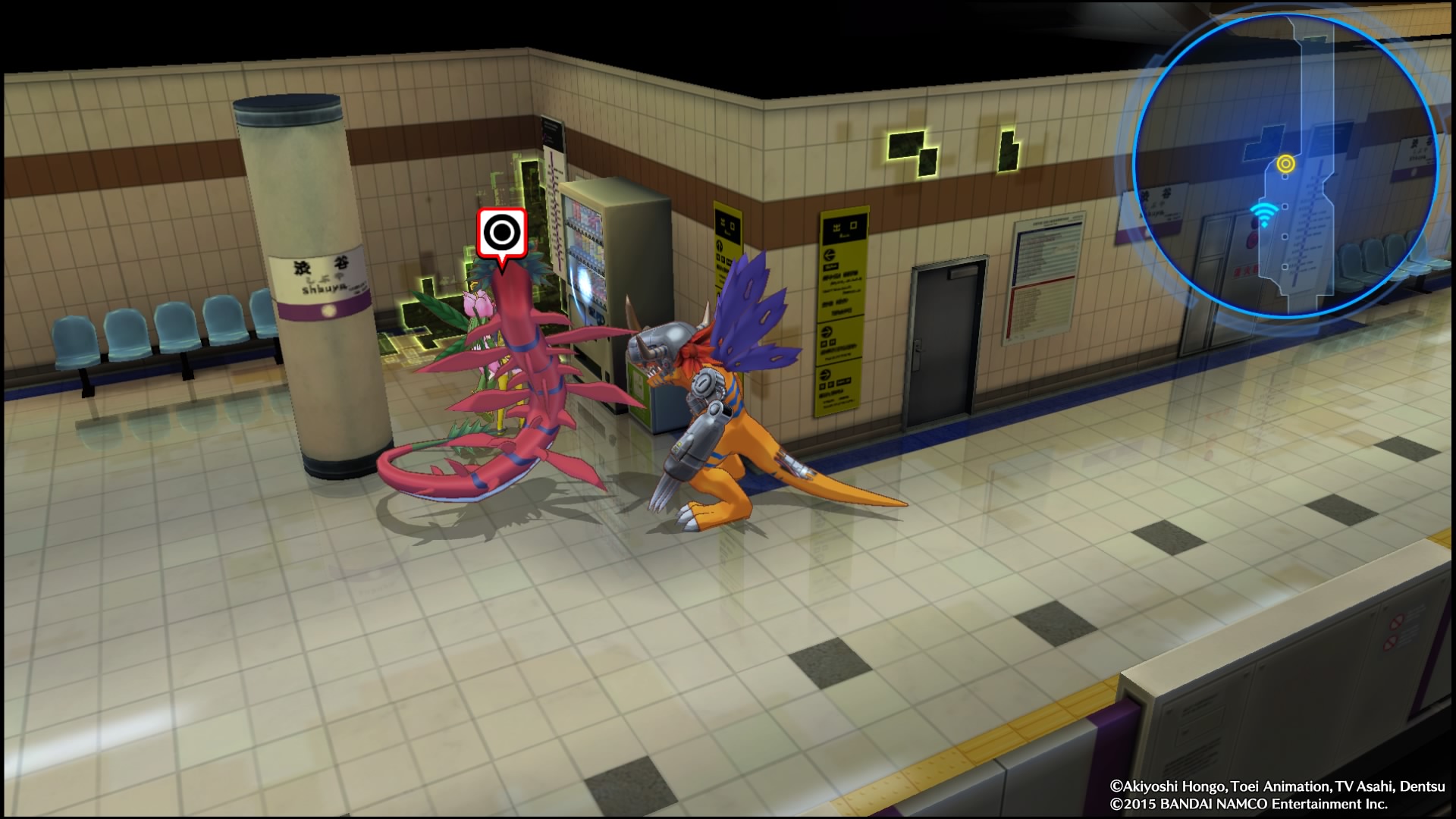 §1.前往涉谷,在左侧的地下铁入口处使用骇客技能Stealth Hide 即可通过守卫的监视进入涉谷的地下铁。在地下铁深处与杜那斯兽战斗。尽量使用病毒种的数码宝贝就可以轻松取胜。战斗胜利后获得道具【和谐的意志】。
