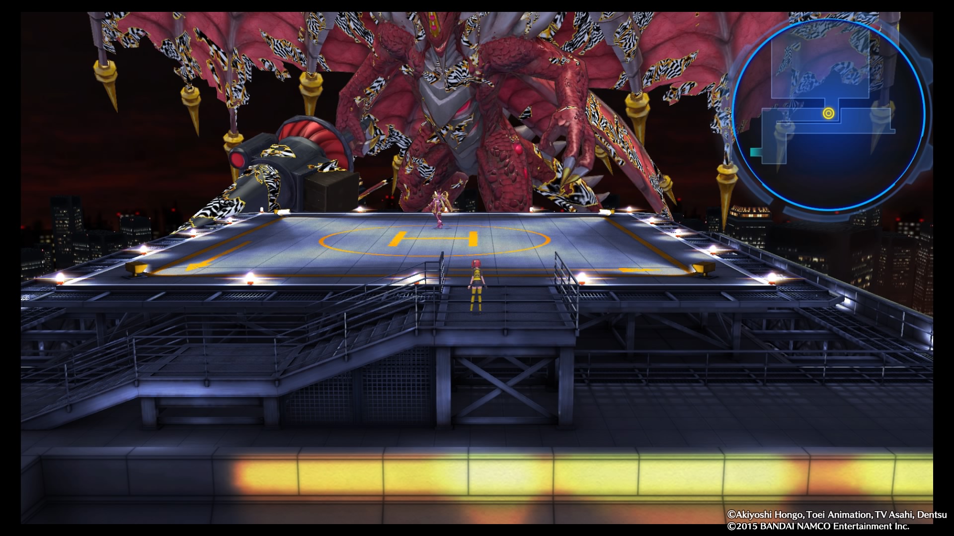 §1.剧情结束后前往御台场,在深处的楼房顶端停机坪触发剧情。迎战艾可萨兽,削减其一定量的HP进入剧情(我这里使用天使兽与女恶魔兽进化成的混沌神魔兽的必杀技一次即可让其掉3000左右的HP)。