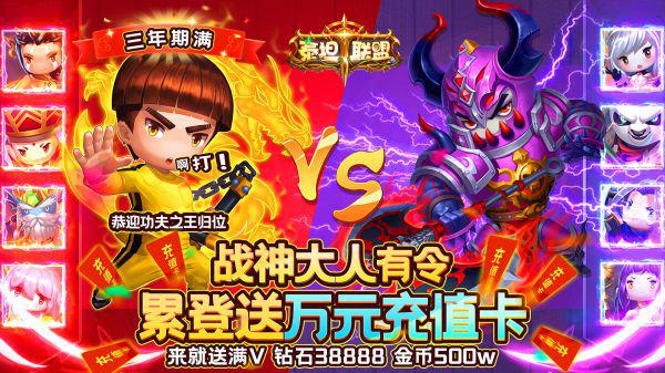 泰坦联盟-送万元充值:登录完成新手引导后,即可在邮箱领取800元充值卡,每日登录可通过“登录送充值”活动领取充值卡,累计万元!登录领充不够过瘾?每日参与天梯排位活动还可获得更多充值卡哦!登录就送满级VIP,钻石38888,金币500w,还有800元充值卡!持续登录赢更多充值卡,累计万元充值等你来领!首充即得功夫之王李小龙,还有宝物王者之剑三件套!后续档位更有领主安缇诺雅、幽灵死神奥丁等你来拿!持续在线再送百张神抽券,发发入欧,好运连连!次日登录赠送刺客布鲁图斯,七日还有橙色英雄暗影射手莉雅!成长基金十倍返利,全服购买再送66666钻石!天梯排位动态平衡,获胜可得充值卡,还有海量召唤券!