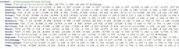 按照这条,它取了这些数据中我们所在地图对应行中第(4+季节号(春季为0))个分隔符后的字符串。对应春季山顶地图,就是这串: