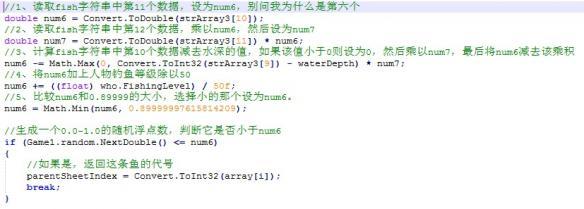 跳过下面大段各种读取、循环、判断,我们来直接看肉戏,关于决定钓起几率这一段: