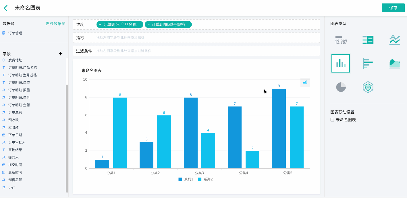 简道云有统计表,明细表,数据管理表,日历,甘特图,流程分析表,图片组件,文本组件,筛选组件;可以给图表设置排序规则;可以把多选类字段作为维度进行统计;可以自定义图表的 x 轴和 y 轴;可以自定义提醒周期,按时主动推送仪表盘查看提醒;可以设置图表数据权限直接继承表单中的权限,不用重复设置权限;自定义预警规则,触发预警自动提醒;自动计算同比环比值;增加辅助线,帮助观察数据。并且支持数据筛选。
