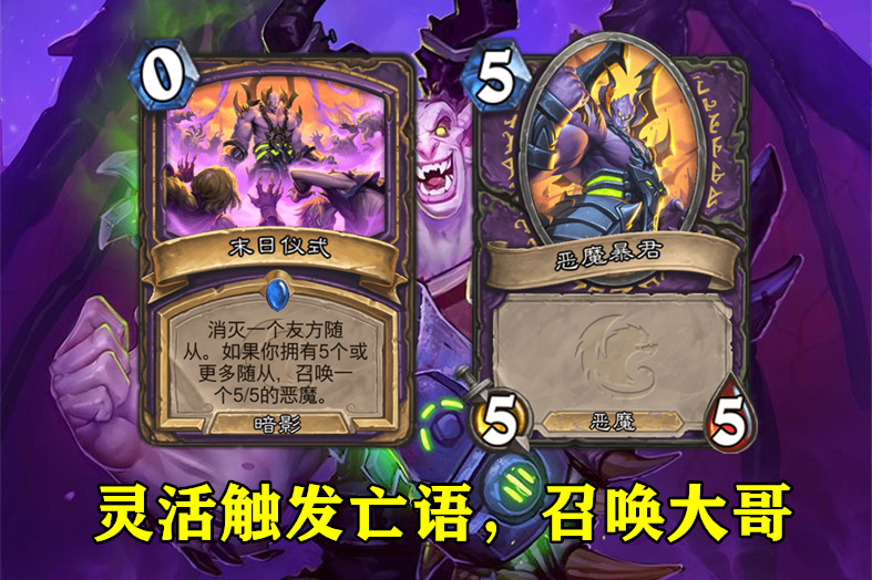 如果把末日仪式看成0费召唤一个5-5的恶魔暴君,你们说它强不强?答案是肯定的,强!剩下的问题就在于末日仪式的前置条件是否划算,是否容易实现。
