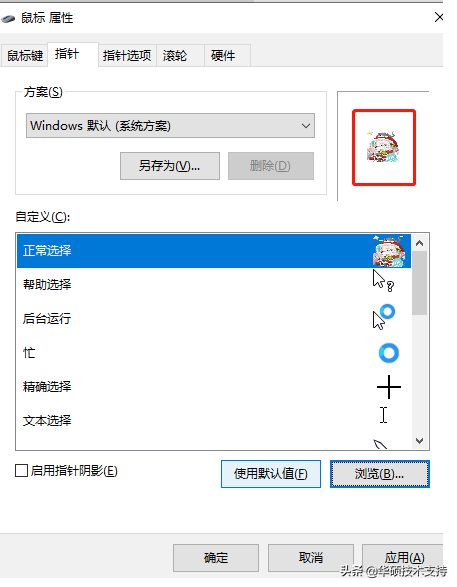 选择【浏览】,把准备好的图片(需提前将图片转换成cur图标文件)选中即可。