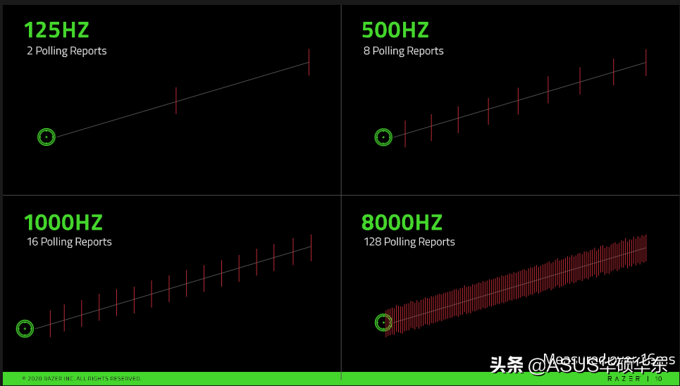 125Hz回报率每毫秒回报2次,而8000Hz回报128次,对配套硬件性能提出巨大挑战