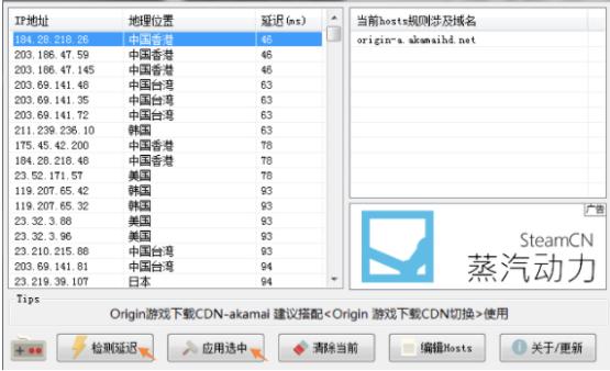 出现ip列表后,点击【检测延迟】;选择延迟比较低的,再点击【应用选中】,如果速度不理想,可以多换几个IP试试