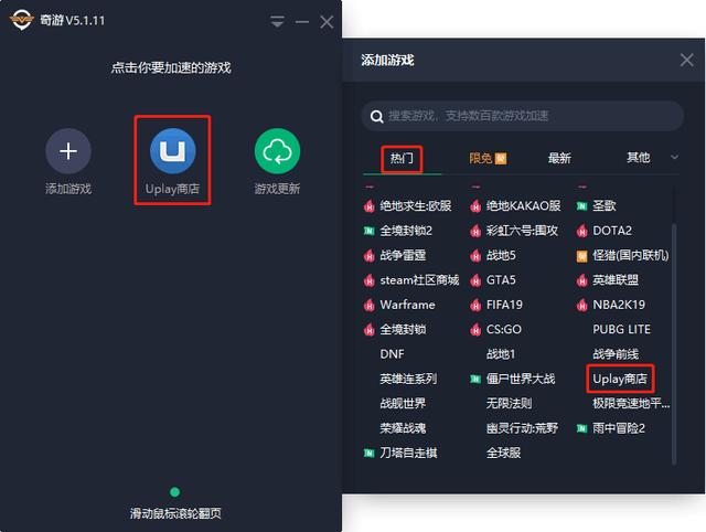 奇游添加最新节点【Uplay商店】,专门解决无法登录Uplay的问题,反复强调多次,无敌巨好用。