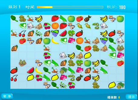 连连看其实是有很多版本的,但是从我个人出发我还是比较喜欢果蔬连连看的,看到这些五颜六色的水果就很刺激我的食欲,不知道大家是怎么想的呢?其实不管是什么类型的连连看,技巧和攻略是可以通用的,果蔬连连看一直是我打发空闲时间的最佳游戏选择,下面就给大家简单分享下我自己过关的小技巧。