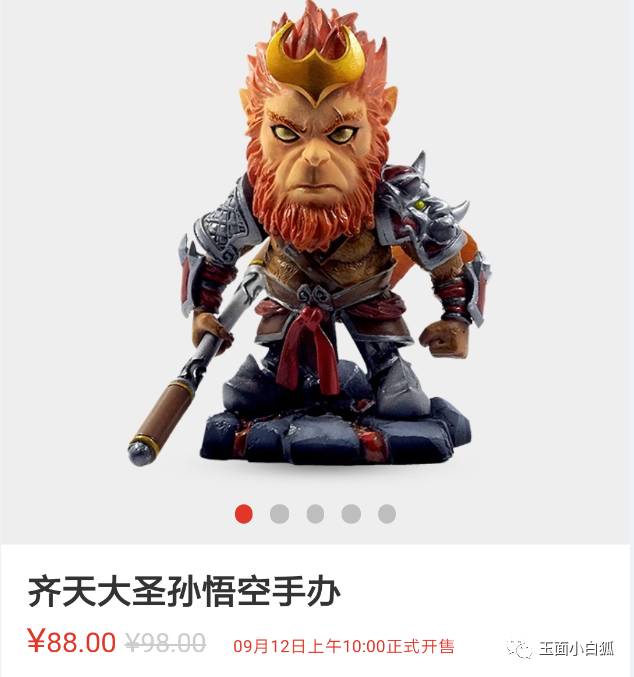 齐天大圣手办,折扣后88,其实手办这个价格不贵,不过大小就不敢恭维,加底座10CM左右。因为正版手办为了保证质量,不可以低质量产,所以成本价也比较高,自然就比较贵了一点,其他手办也都是这样的行情。
