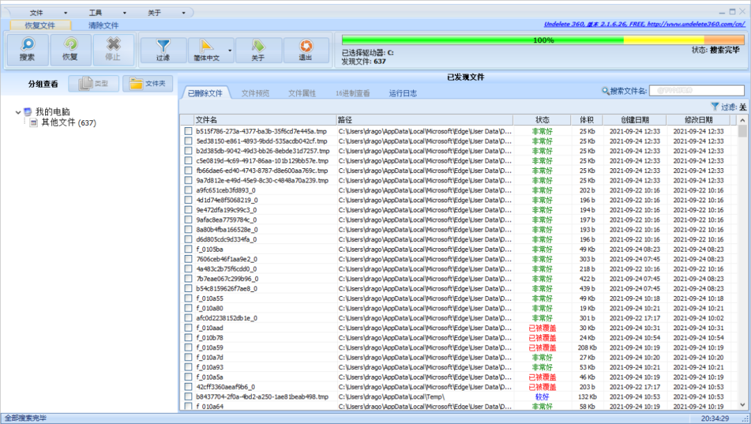 另外这些数据恢复软件基本上只能恢复误删除/格式化的文件,能不能完全恢复文件,这个就要看运气了,如果文件数据没有被覆盖的情况下,很大概率是可恢复。