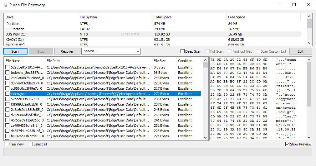 Puran File Recovery 一款简易免费的数据恢复软件,支持 FAT12/16/32 和NTFS 磁盘格式,可以检测到删除/丢失的分区,甚至从格式化的驱动器恢复文件。RAW和物理驱动器也可以被扫描。