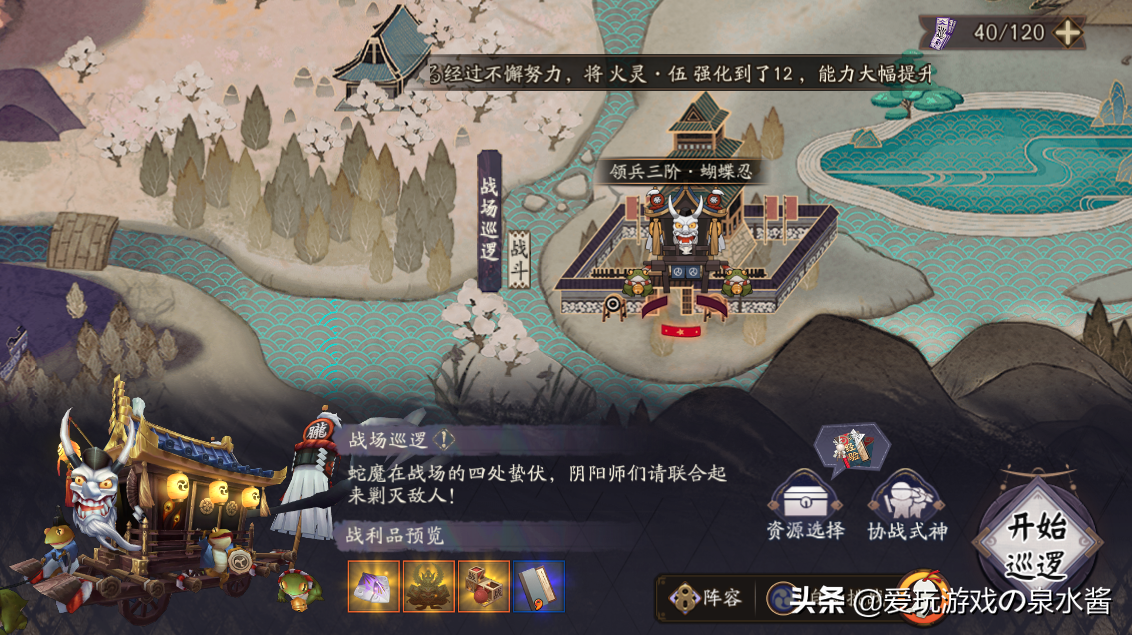 前期可以囤下体力靠战场探索和兵粮支援先提升下buff,注意体力上限是120(每日恢复40体力,此外每日可花勾玉购买30体力)。