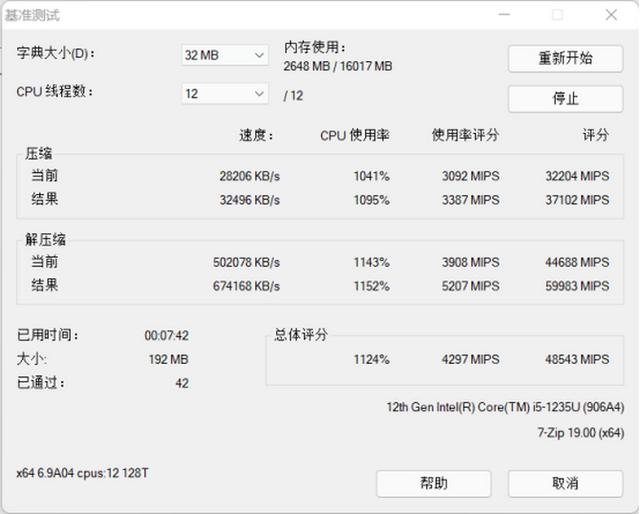 解压缩是我们日常使用非常频繁的一款应用,主要看的就是处理器的性能表现,在使用7-ZIP进行测试的时候,战66五代酷睿版的整体评分为48543MIPS,性能表现出色,能够满足日常的绝大部分的压缩文件任务。