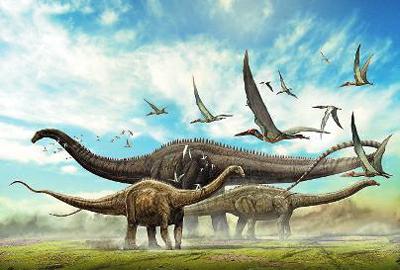 这个巨大的泰坦巨龙是以阿根廷的名字命名的(在阿根廷被发现的地方),它从头到尾测量,有近120英尺(36.5米)长,可能重达100吨,它的一个椎骨超过4英尺(1.2米)厚,可想而知这种恐龙是多么的庞大。