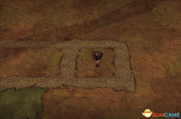 清理完杂物后,以蜂后位置为中心在左边(或右边)数14格地皮,这是蜂后的最大范围。将第14格的地皮挖掉,作为标记。然后在蜂后位置的右上和右下(或左上和左下)都挖14格地皮,作为加速路径。然后把两条路连起来,形成一个长方形。再在最右侧挖五个地皮(中间空一个格子,看图),这是蜂后攻击范围圈外的区域。最后在蜂后旁边也挖个地皮(中间一空)。挖好后全部铺上卵石路,这样加速路就弄好了。