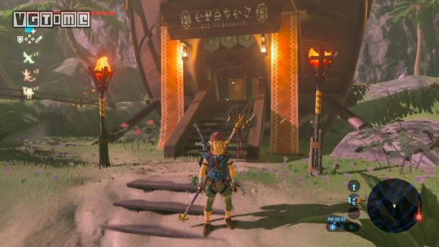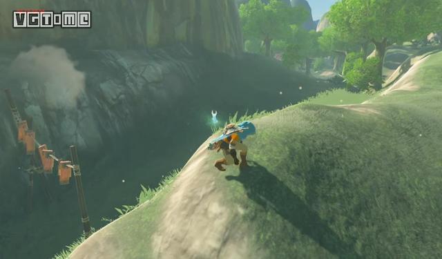 乘热气流飞上岩柱顶部,和哥隆族兄弟对话,开启这里的试炼之祠挑战:限定时间内爬上岩柱并在途中收集100卢比。完成后可直接去试炼之祠里获得“克服之证”。