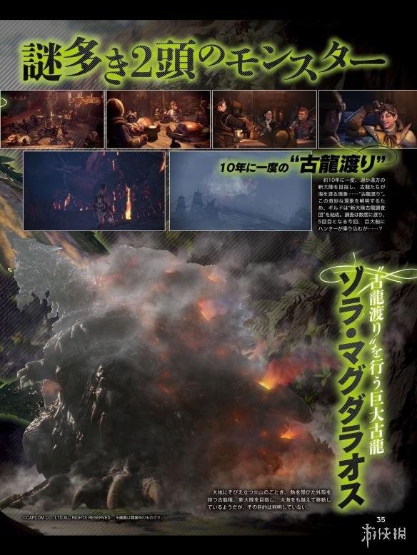 紧接着就是巨型古龙 熔山龙 “ゾラ·マグダラオス”。大约10年会出现一次从遥远的地方为前往新大陆而渡海的现象。为了解开这个奇妙的现象,公会成立了“新大陆古龙调查团”。