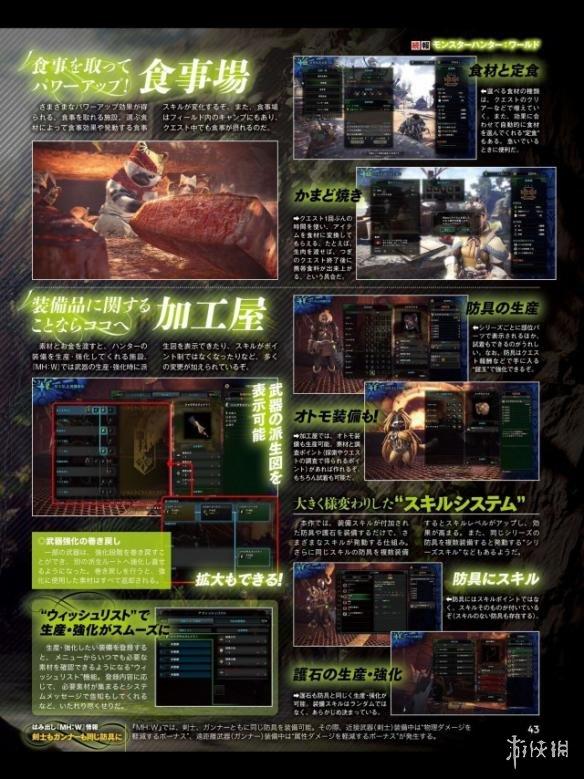 在加工屋里可以进行各种装备生产和强化,强化和生产武器装备时可以看到派生图,非常的便利,技能也不再是以前的点数制度了。顺带一提本作中护石可以和防具一样进行制作,而且技能不是随机的是固定好的。
