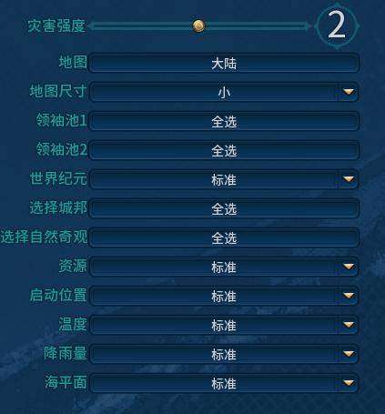 选完地图后也可以在下方的栏目中微调一下,可以改变一下火山、丘陵、山脉、雨林、草原、冰原等的数量。