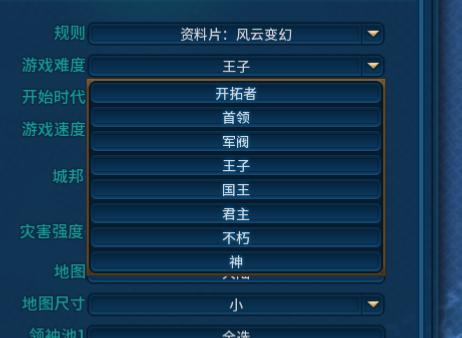 游戏的难度分为八级,难度从“开拓者”到“神”依次递增。其中“王子”难度为游戏默认难度。