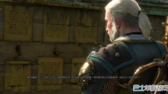 现在任务要求杰洛特前往七只猫旅馆外的告示板,通过快速旅行先抵达目的地,与告示板互动即会进入一段剧情。
