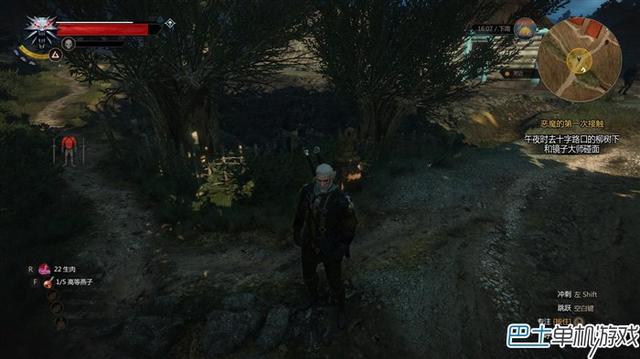 不过这都无关紧要,男子询问杰洛特是否需要帮助,答案当然是肯定的。男子告诉杰洛特当事情结束之后,在午夜时分的某个路口的柳树下面跟他会面。在杰洛特的脸上留下一个记号之后,男子神秘的消失了。