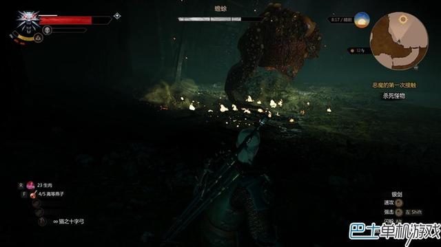 利用尸体引来了怪物——一只巨大的蟾蜍——之后,战斗随即开始。