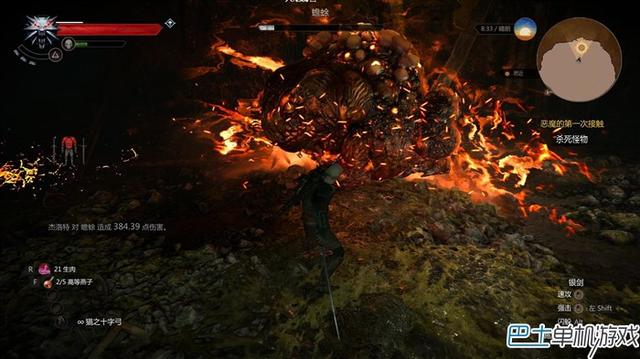 蟾蜍的攻击分为三连毒液喷吐、弹跳、舌头攻击和毒液迸射。动作幅度都很大,很好躲避。并且火焰攻击对蟾蜍效果非常好,可以利用火焰符印快速解决战斗。