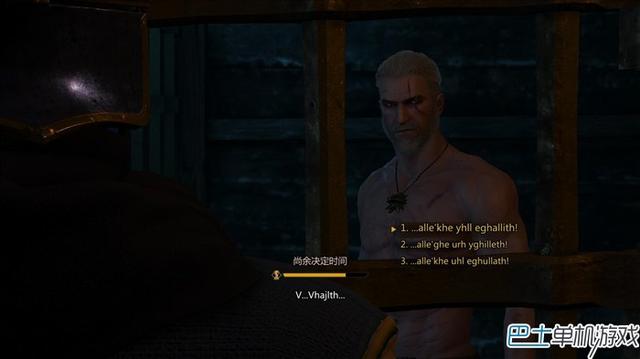 语言不通的情况下,杰洛特很难解释清楚这一切,这边会出现一个有时间的选择,也就是杰洛特尝试询问“带我去见你们的船长”,这里选择第三个选项可以获得额外的经验值,但是无论哪个选项,都是同样的结局。