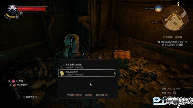 先利用感官视觉在附近的包裹中,可以找到下水道栅栏的钥匙。