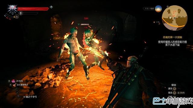 进入下水道后开启感官视觉,追踪着脚印前进,下水道里有不少水鬼需要清理。