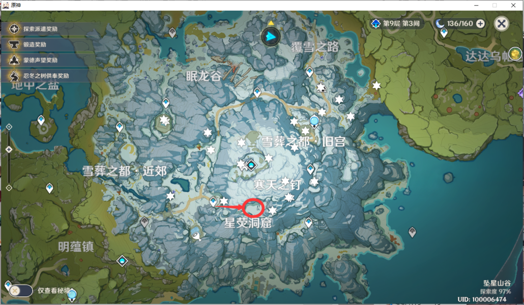开启雪葬的星银密室大门一共需要观察点亮8个石碑,位置如下