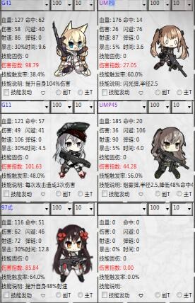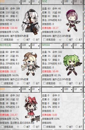 看上去比较诡异的阵容,虽然吃的比较多但是意外非常的好用,MG推荐高命中高弹链的MG5,SMG低配司登就可以担当,HG最好还是绿毛。这个阵容强的地方非常明显,无论吃盾娘还是装甲都十分不错,绿毛保证了2RF对后排杀伤力,而MG可以通过初始高伤害打死盾娘或者装甲兵保证RF快速转火,SMG拉动跑位保证绿毛尽量少收到伤害,因为手枪实在不能抗,小编实测4-4N大概可以吃掉4组3编盾娘+狙的最后还有比较充足的血量剩余。同时本阵容打装甲的伤害也不错,算是4-4N中独有的阵型。