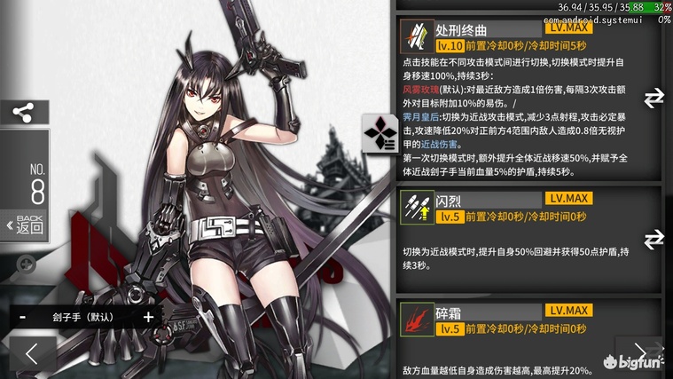 战术型aoe爆发可近战输出。1644远程dps,1299aoe近战dps,8391等效血量。1技能11988小范围aoe,2398大范围aoe。2技能切换为近战aoe模式,最高66点近战贴膜,自身116点贴膜并提升等效血量至11950。4技能局限性较强。以爆发和aoe为主的3星,aoe近战模式肉度依然难以和护甲t抗衡,适合快速低损清理中低等强度敌方。