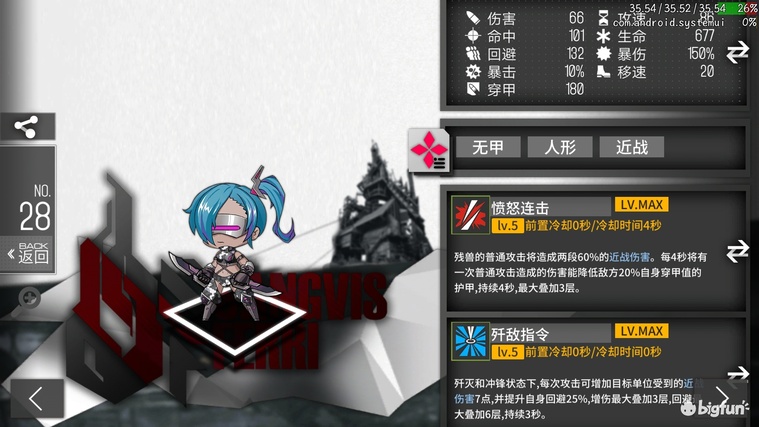 战术型单体带控制持续输出。1942算上3技能dps,2719-6118一技能期dps,7417等效血量。1技能大幅提升对boss后续伤害,需要3.25秒叠满。2和4技能相互配合,手动释放对最高血量3s禁锢+集火+增伤。高dps数值在打1w4+无甲单位才可完全发挥,如绿憨憨白憨憨等近战单位且加以禁锢。适用于较高强度的战斗控制并击杀。