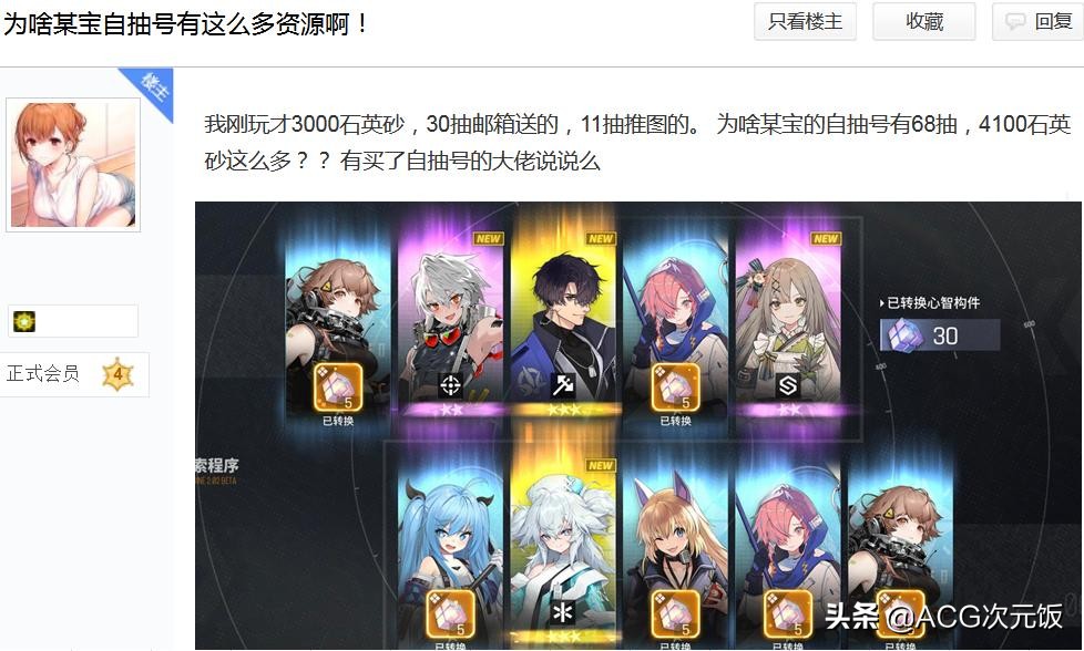在云图计划公测以后,除了原作少女前线的玩家入坑以外,还有不少喜欢二次元手游的玩家入坑。不过就当大家才开始抽取人物角色,并且提升他们练度之时,却发现某些号商手中已经出现了“资源丰富”的开局初始号,这些账号不仅有高额的卡池资源,同时还有一些指定三星加入其中,不禁让一众才入坑的人惊叹起号商的肝力。