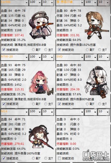 所有图片数据来自于“干死雪球”阵型计算模拟器,需要的玩家可以去百度贴吧精品贴中寻找。