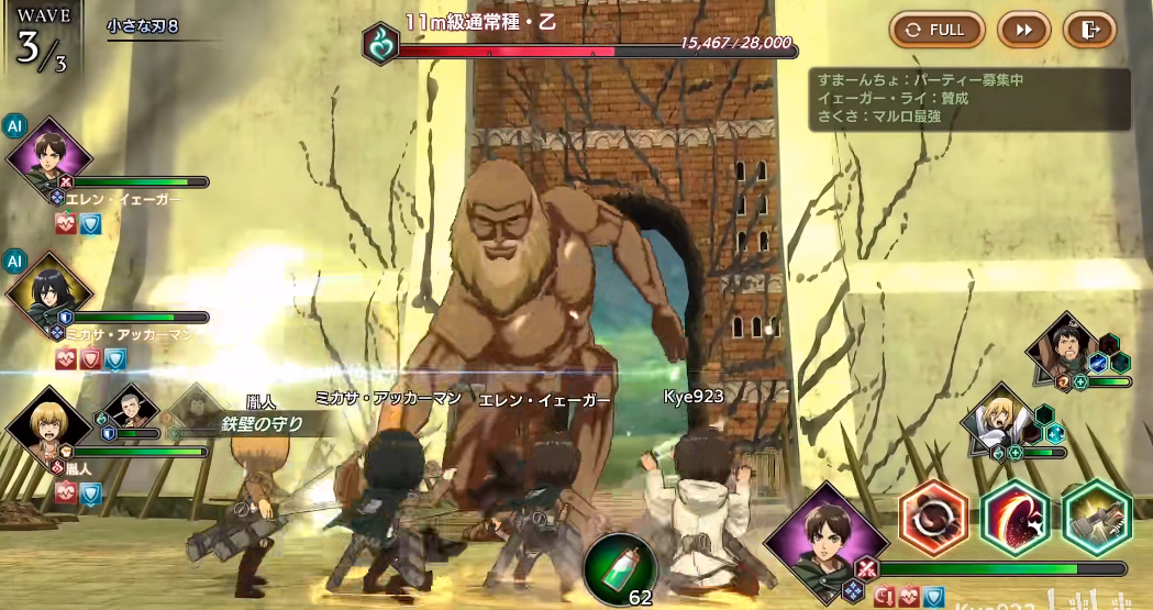这一款游戏目前没开放国服,想玩的玩家只能自力更生了。《进巨Brave Order》是以《进巨》这一IP开发的手游,相比起本文前三部手游大型boss的数量,这一作可谓是大型boss多如狗,游戏的大部分战斗都是跟巨人对战。