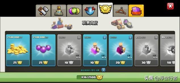 首先,25个联赛币可以购买250万圣水或者金币,而实际上上线一次用完兵营的配兵基本就能打这么多资源,如果购买的话很不划算。