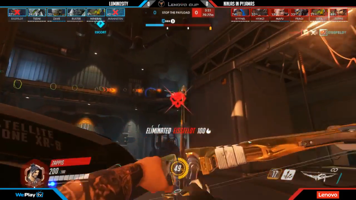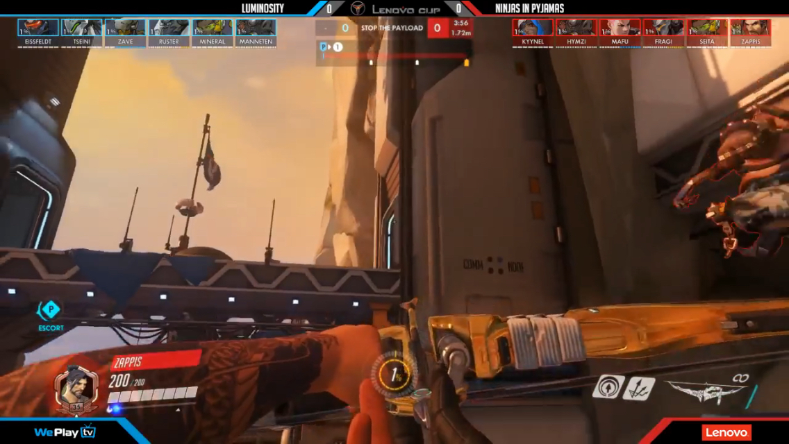 NIP的半藏探测箭发现了对面76在楼上骚,然后随缘箭一箭爆头。