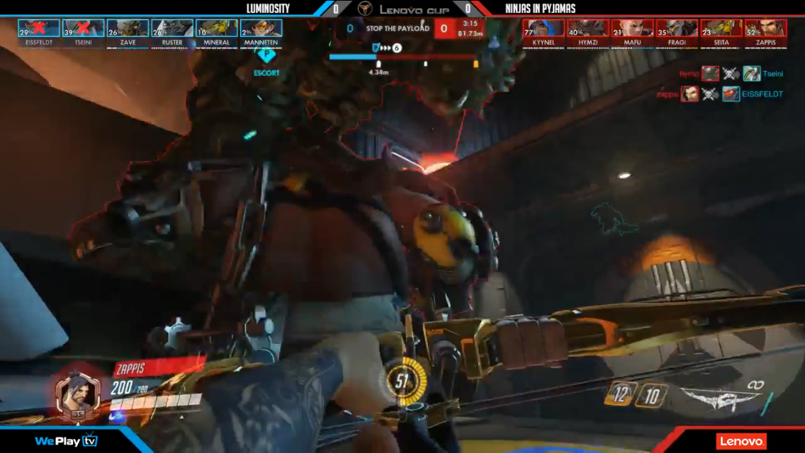 NIP这边直接全部前压,留下卢西奥推车。大锤和安娜上二楼,其余在一楼。