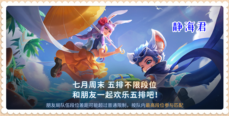 在本次更新后,7月份剩下的的每个周五、周六、周日的19点~23点都会开始五排不限段的活动,有想上分的小伙伴可以提前约起来了。