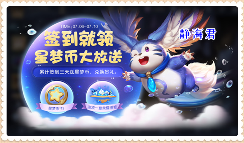 在7月6号更新后,到7月10号之间,玩家累计签到1天可以获得4个星梦币,累计签到2天可以获得5个星梦币,累计签到3天可以获得6个星梦币。