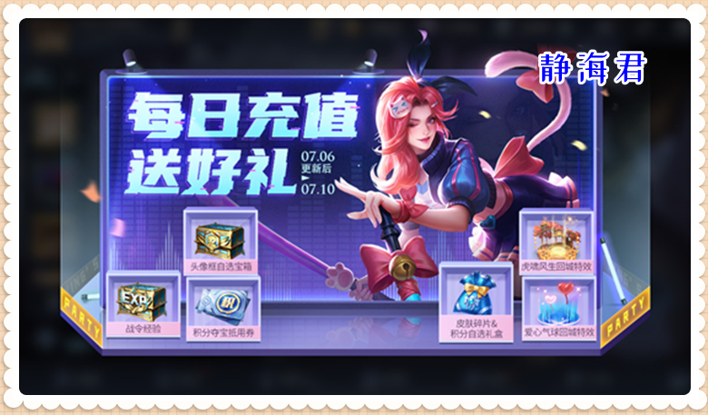 另外,在更新完成后,策划还安排了一个回收金币的活动。大家可以在7月6号~7月9号之间,通过购买头像框礼包的方式参与各个头像框的抽取中来。